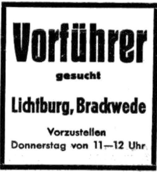 Hermann Silz, der erste Betreiber der Brackweder Lichtburg, hatte "die technischen Vorrichtungen für Tonfilme" bereits installieren lassen.