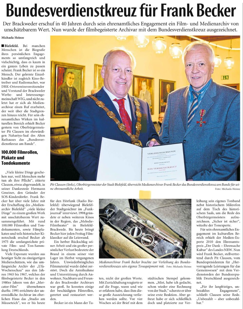 2001: Frank Becker wurde zum „Archivpfleger für audiovisuelle Medien im Bereich der Evangelischen Kirche“ ehrenamtlich bestellt und nimmt diese Tätigkeit unter der Fachaufsicht des Landeskirchlichen Archiv der Evangelischen Kirche von Westfalen, Bielefeld, wahr.