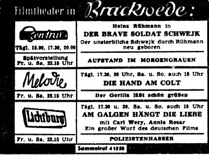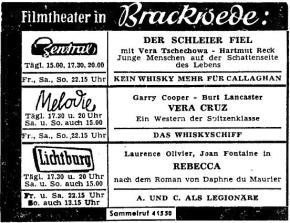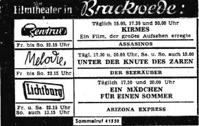 Brackweder Kinoanzeigen 1960