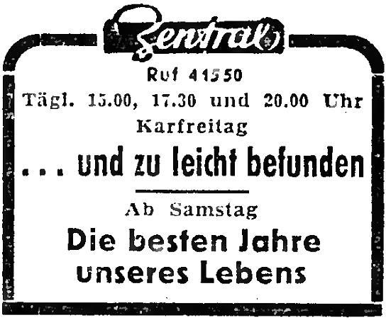Zentral-Theater, Hauptstraße 127 (23. Januar 1953 - 3. April 1961)